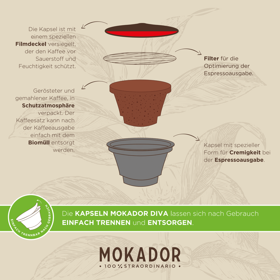 Die Kapseln von DIVA MOKADOR lassen sich nach Gebrauch mite einer einfachen Geste trennen und entsorgen.